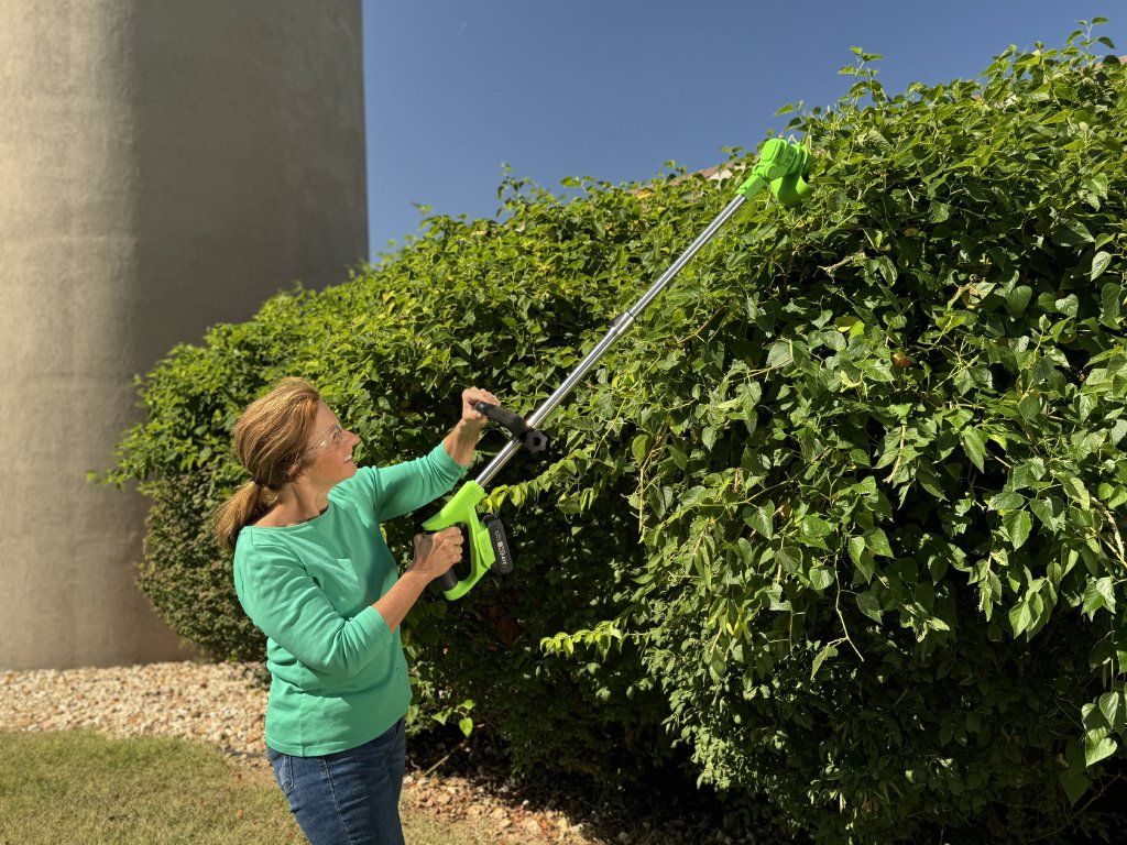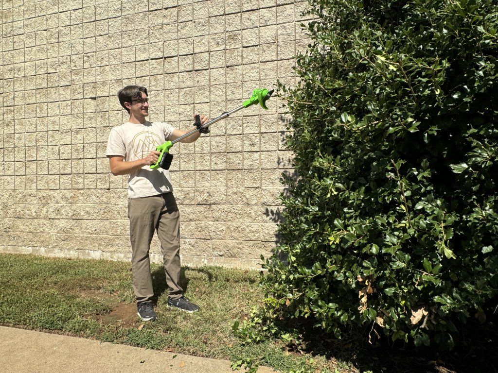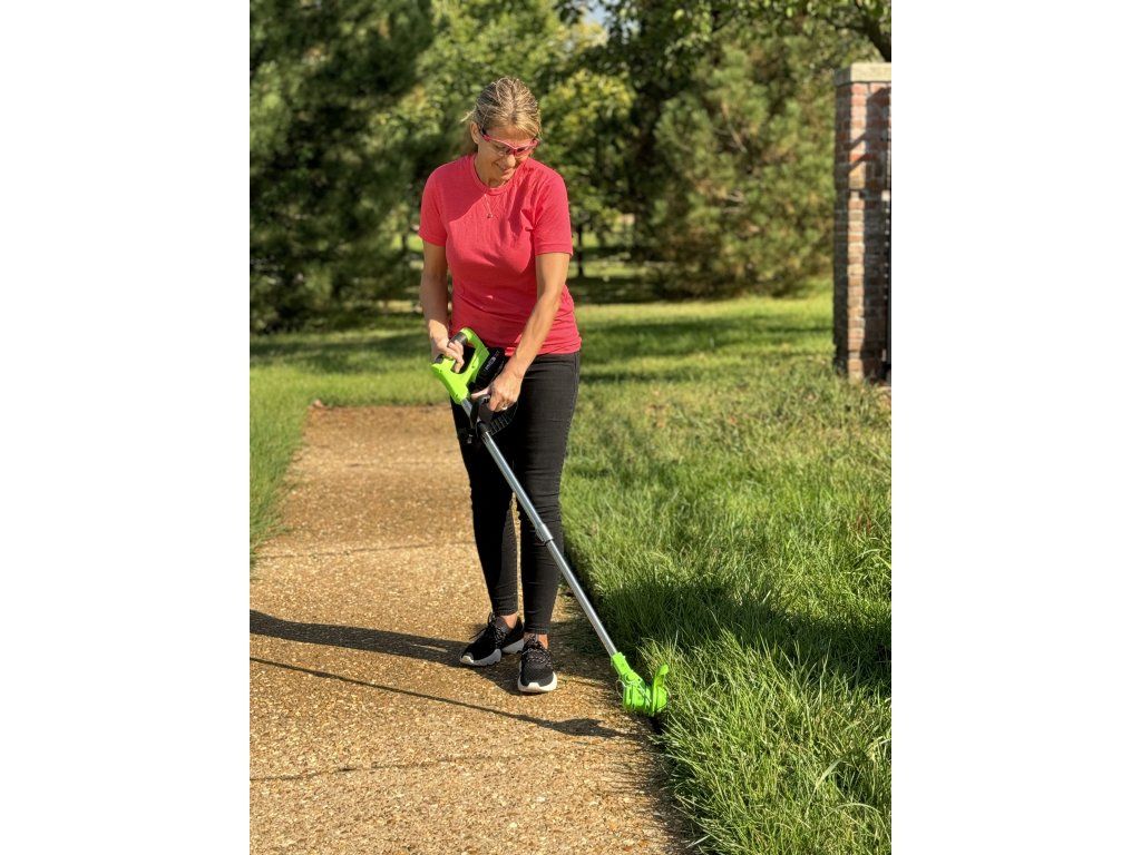 Sečná hlava má tři různá nastavení výšky, jedno pro vysoký sek, druhé pro střední sek a třetí pro nízký sek. Otočná hlava je nastavitelná, takže můžete sekat a střihat v perfektním úhlu pro jakoukoli práci. Teleskopická hřídel se vysouvá do ideální délky, zatímco ovládací rukojeť se posouvá a přizpůsobuje hřídeli, takže ji můžete přizpůsobit své výšce a velikosti těla, což usnadňuje používání bez ohýbání nebo shýbání.